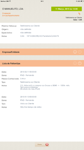 Os detalhes das atividades realizadas pelos representantes comerciais junto dos clientes devem estar acessíveis para consulta a qualquer instante. O iSales possibilita a configuração de tipologias de atividades e o registro e acesso a estas, de forma ubíqua e em associação a um cliente ou oportunidade de negócio.