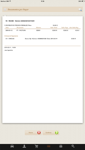 Os pagamentos são geridos em função da conta-corrente do cliente. Os respectivos recibos podem ser, de imediato, emitidos para uma impressora móvel, para impressoras do cliente ou enviados diretamente por email. O iSales possibilita diversas formas de pagamento, atualizando, em tempo real, os saldos correntes.