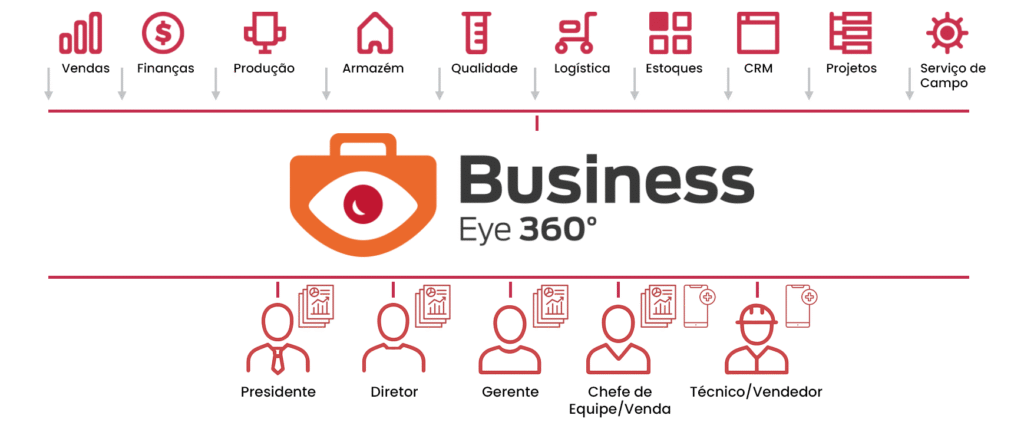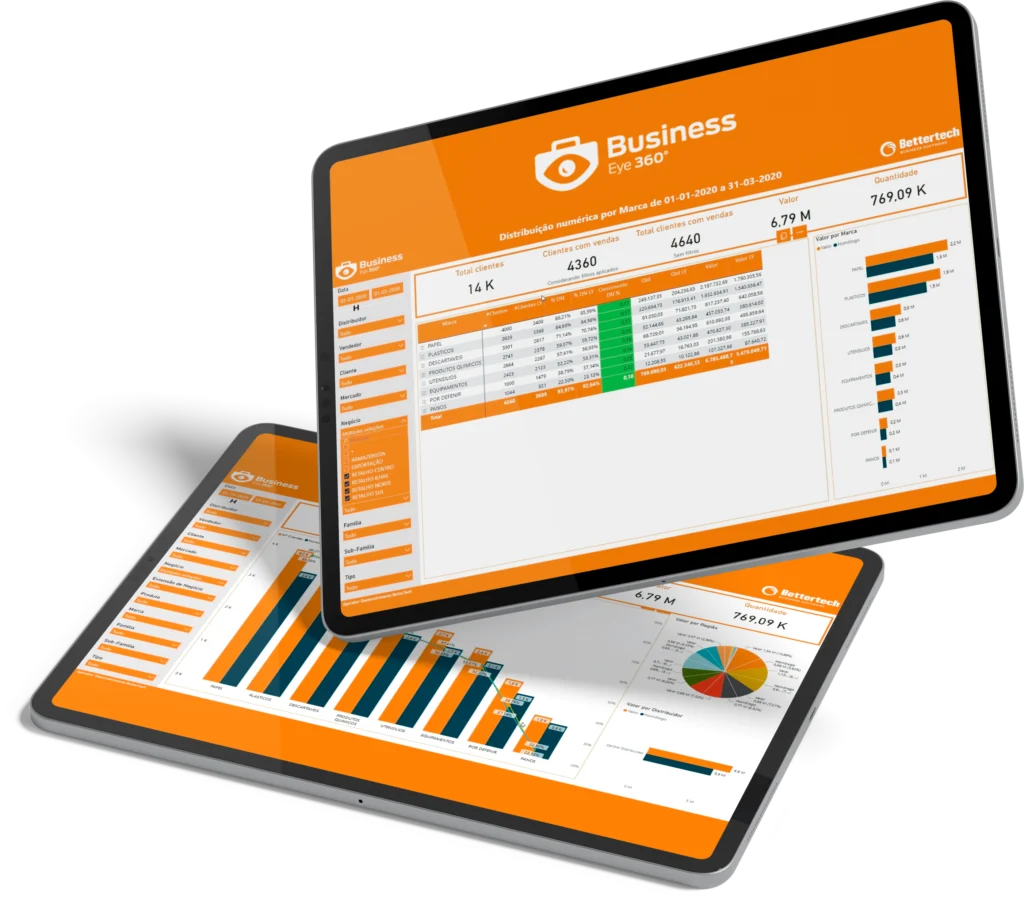 No atual mercado global de transformação digital, é essencial liderar e otimizar processos com inteligência de negócios. O Business Eye 360º, nossa solução de BI, coleta e distribui automaticamente dados em Dashboards Power BI®, Relatórios de Gestão e um aplicativo, proporcionando análises ágeis e estratégicas.