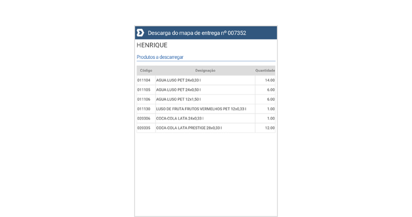 Permite ao entregador saber o que tem que descarregar ao fim do dia. Apresenta uma lista dos produtos que não entregou.