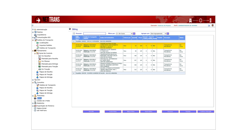 Os clientes podem acessar ao portal NetTrans para pedirem serviços de expedição e acompanhar o estado dos seus serviços.