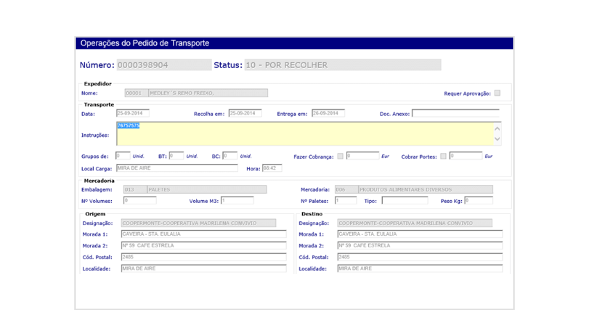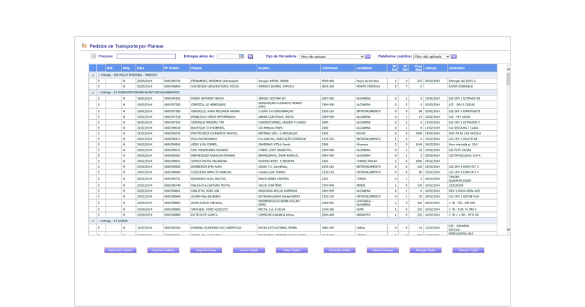 O NetTrans gerencia pedidos de transporte com uma origem e um destino determinado. Cada pedido é caraterizado com o tipo de mercadoria, número de volumes e pesos.